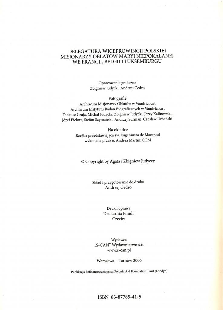 Ce Beau livre de 175 pages des époux Judecki est sorti en 2006. C'est un ouvrage de référence concernant les Oblats de Marie Immaculée.