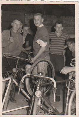 1960- Hayange- r+®paration de v+®lo sur la route de Munich